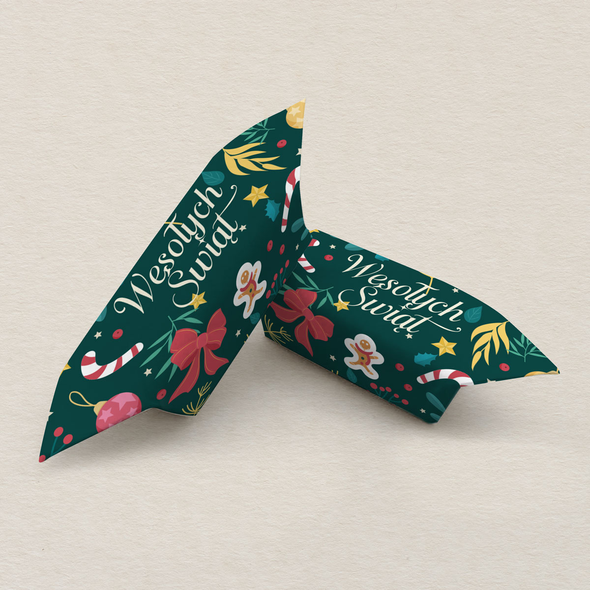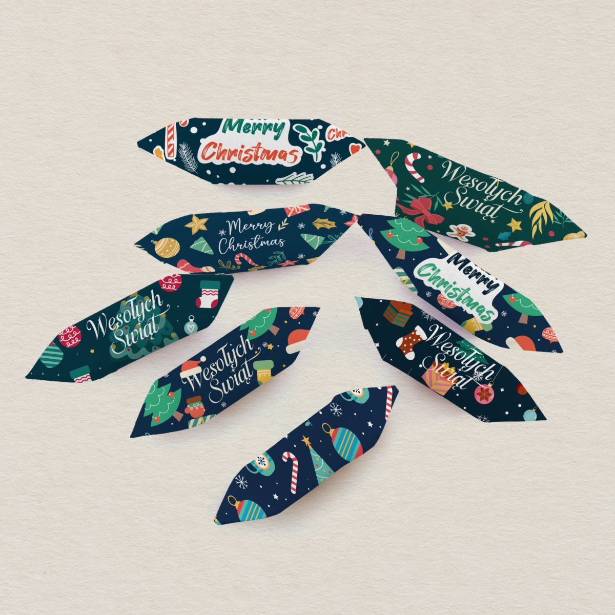 Świąteczne wzory: choinki, prezenty, gwiazdki, pierniczki, napisy Wesołych Świąt i Merry Christmas