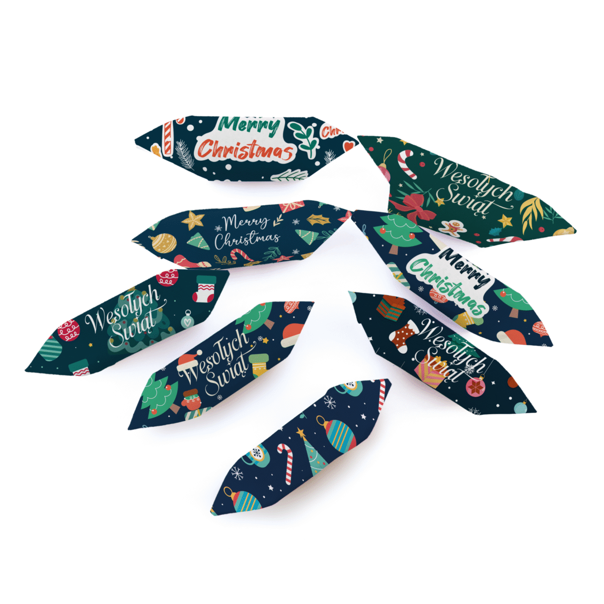 Każda krówka to klasyczny smak w pięknym bożonarodzeniowym wydaniu – choinki, prezenty, śnieżynki i napisy Wesołych Świąt / Merry Christmas.