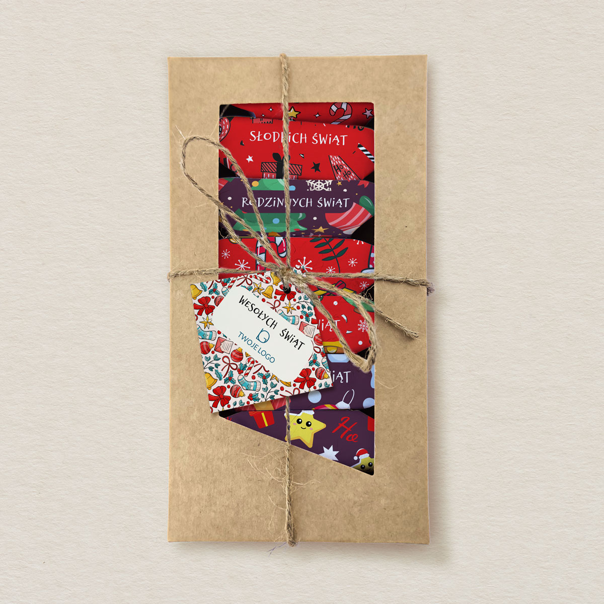 8 krówek z życzeniami + personalizowana kartka z logo lub dedykacją. Gotowy upominek pełen magii Świąt!