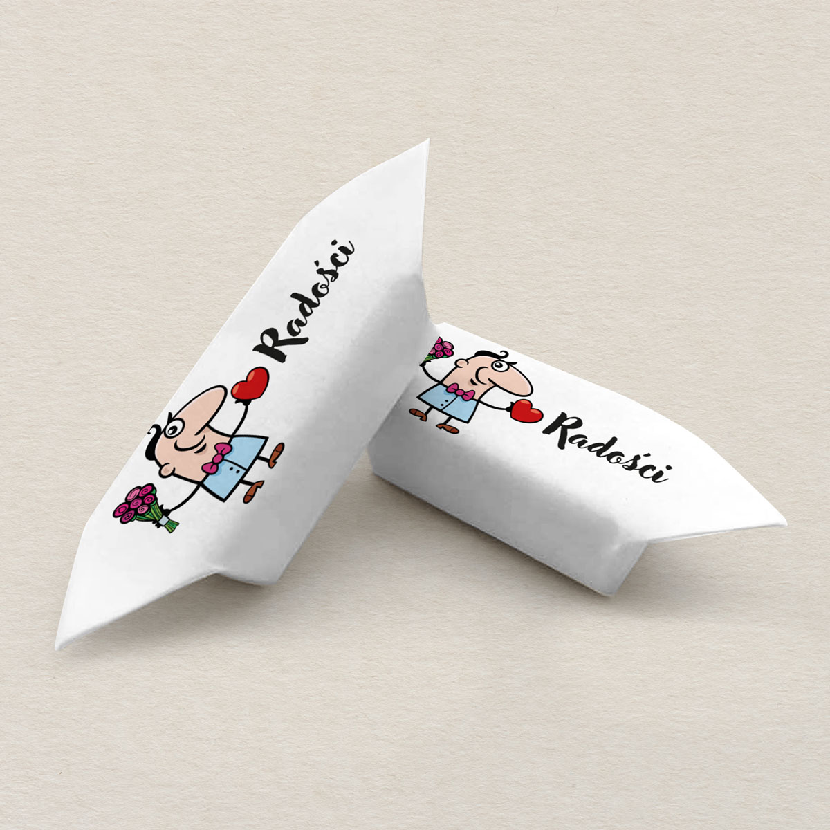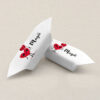 Wyjątkowy zestaw 18 krówek zapakowanych w ekologiczne, ozdobne pudełko z okienkiem, przewiązane czerwoną wstążką. Każda krówka owinięta jest w papierek z romantyczną grafiką, tworząc spójną i pełną uroku kompozycję.