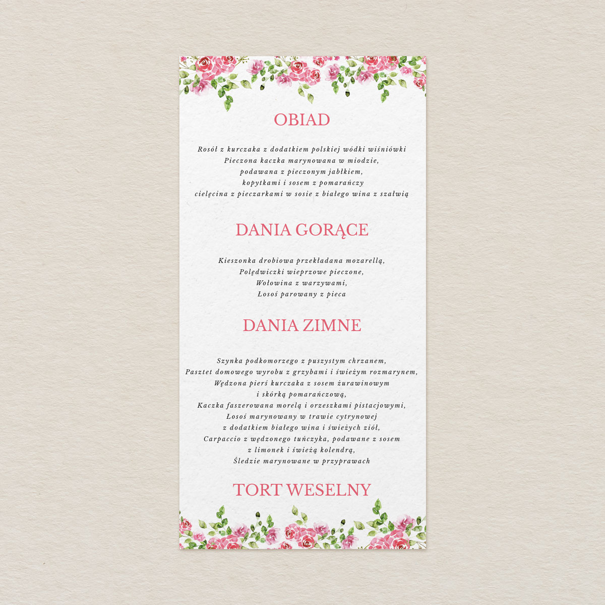 Menu do zaproszeń Kwiecisty bukiet wzór 4