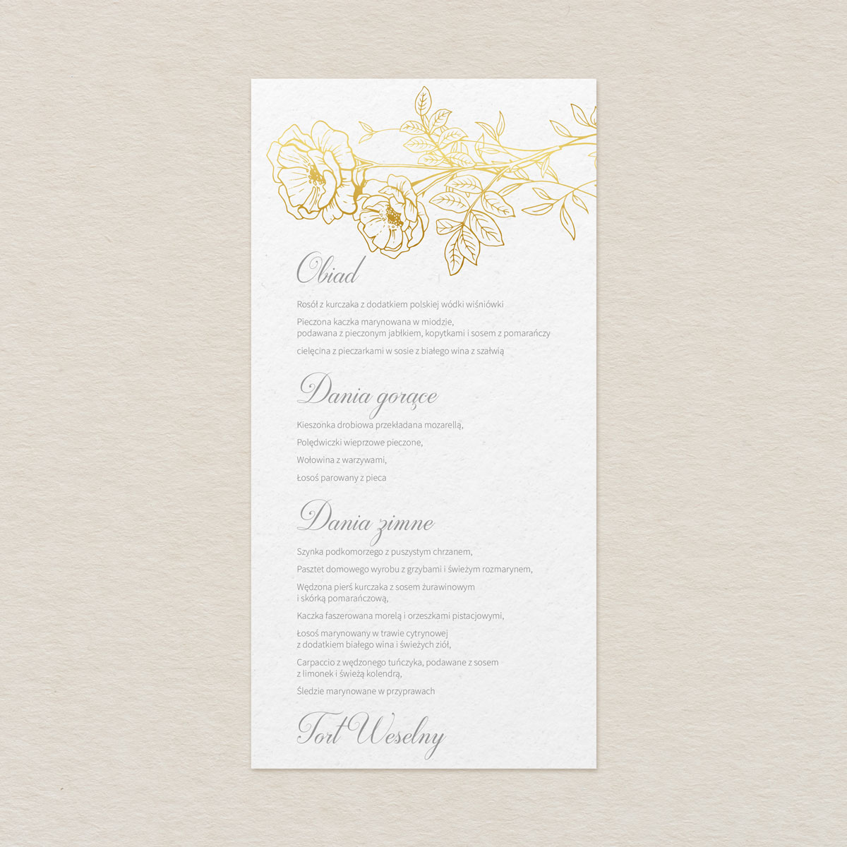 Menu do zaproszeń minimalistyczne Złocone wzór 2