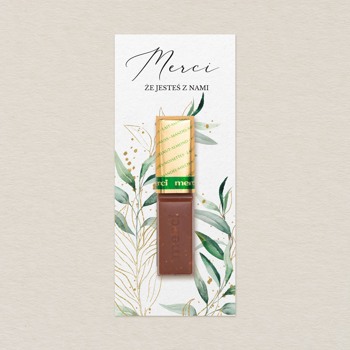 Merci do zaproszeń Eleganckie ze złotem wzór 1