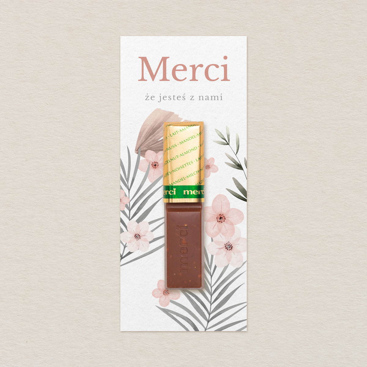Merci do zaproszeń Klasyczne z kwiatami wzór 1