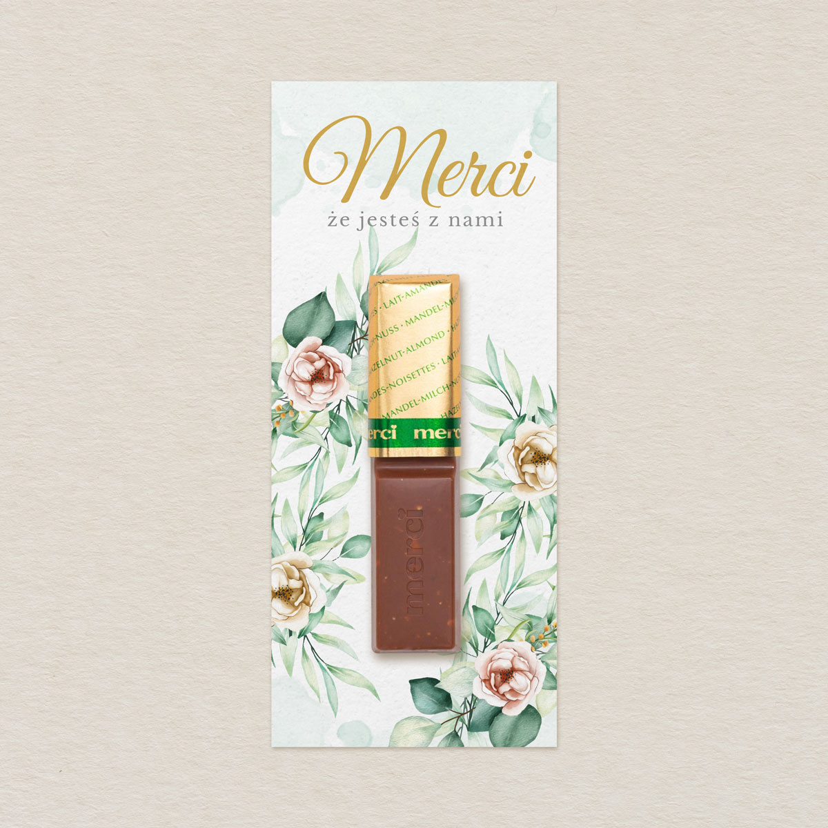 Merci do zaproszeń Klasyczne z kwiatami wzór 5