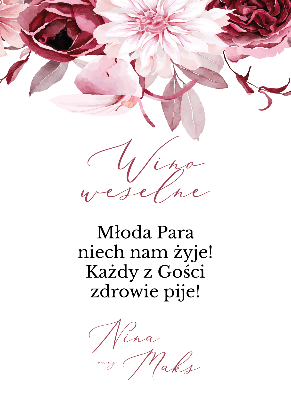 Naklejka na alkohol do zaproszeń eleganckie Polne kwiaty wzór 4