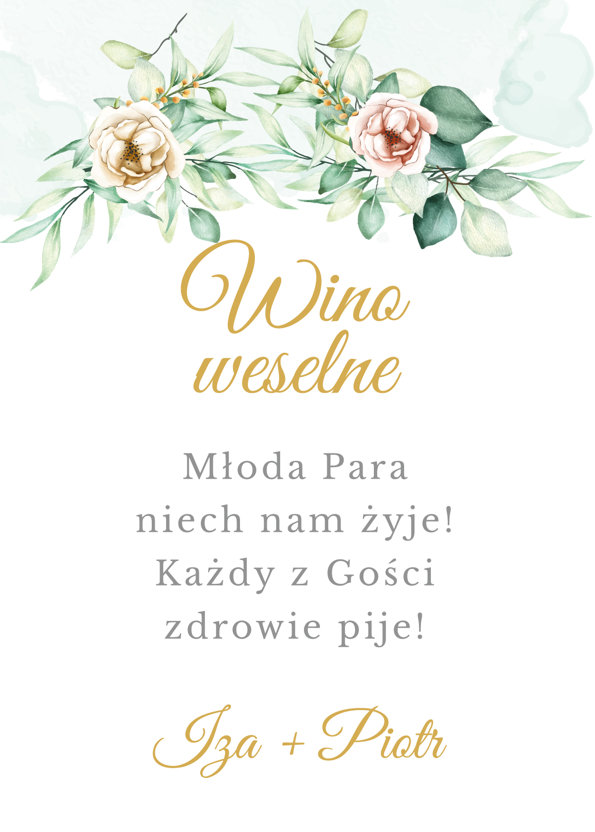 Naklejka na alkohol do zaproszeń Klasyczne z kwiatami wzór 5