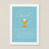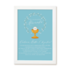 Personalizowany nadruk z imieniem i datą uroczystości, starannie dobrane grafiki oraz gotowa biała ramka tworzą wyjątkową pamiątkę na lata.