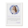Personalizowany nadruk z imieniem i datą uroczystości, starannie dobrane grafiki oraz gotowa biała ramka tworzą wyjątkową pamiątkę na lata.