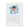 Personalizowany nadruk z imieniem i datą uroczystości, starannie dobrane grafiki oraz gotowa biała ramka tworzą wyjątkową pamiątkę na lata.