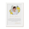 Personalizowany nadruk z imieniem i datą uroczystości, starannie dobrane grafiki oraz gotowa biała ramka tworzą wyjątkową pamiątkę na lata.