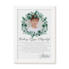 Personalizowany nadruk z imieniem i datą uroczystości, starannie dobrane grafiki oraz gotowa biała ramka tworzą wyjątkową pamiątkę na lata.