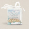Delikatne koraliki, ozdobna biała wstążka, personalizacja sprawiają, że upominek jest piękną i symboliczną pamiątką tego ważnego dnia. Pudełeczko  prezentuje się elegancko i jest gotowe do wręczenia gościom.