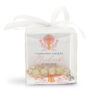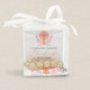 Delikatne koraliki, ozdobna biała wstążka, personalizacja sprawiają, że upominek jest piękną i symboliczną pamiątką tego ważnego dnia. Pudełeczko  prezentuje się elegancko i jest gotowe do wręczenia gościom.