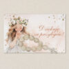 Podziękowanie dla gości na I Komunię Świętą w formie eleganckiego różańca z personalizowaną karteczką.