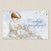 Podziękowanie dla gości na I Komunię Świętą w formie eleganckiego różańca z personalizowaną karteczką.