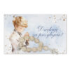 Różaniec wykonany jest ze szklanych koralików z ozdobnym srebrnym krzyżykiem, a całość dopełnia piękna karteczka komunijna z możliwością wyboru wzoru dla dziewczynki lub chłopca oraz personalizacji imienia i daty uroczystości.