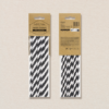 słomki papierowe w kolorze czarnym z białymi ukośnymi paskami
