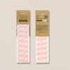 słomki papierowe w kolorze jasnoróżowym z białymi ukośnymi paskami