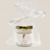 Elegancka świeczka zapachowa w szklanym słoiczku z personalizowaną naklejką to wyjątkowe podziękowanie dla gości na Pierwszą Komunię Świętą. Zapakowana w celofanowy woreczek z białą wstążką stanowi piękną pamiątkę tego ważnego dnia.