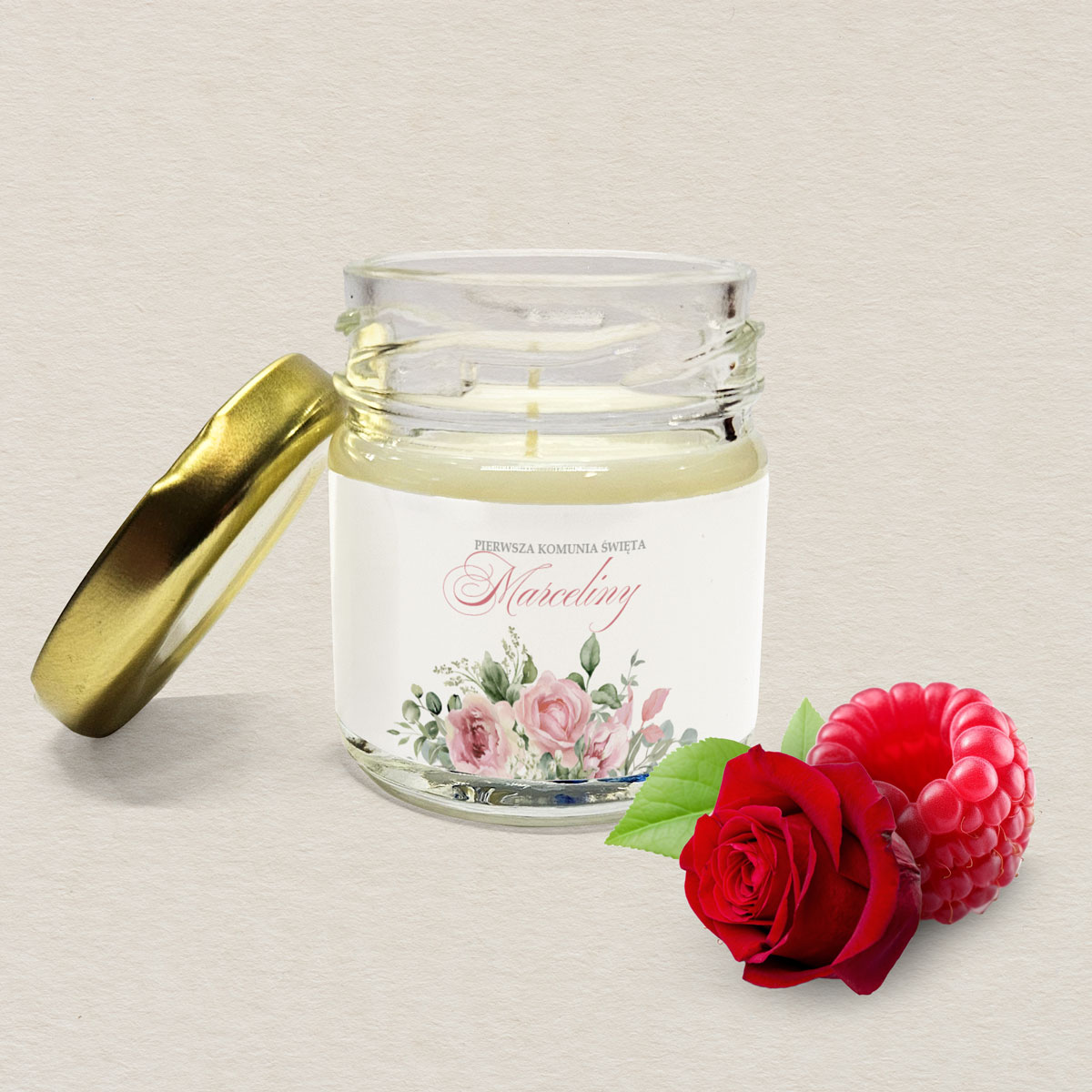 Świeczka komunijna podziękowanie dla Gości – Różane Podziękowanie