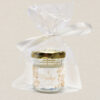 Elegancka świeczka zapachowa w szklanym słoiczku z personalizowaną naklejką to wyjątkowe podziękowanie dla gości na Pierwszą Komunię Świętą. Zapakowana w celofanowy woreczek z białą wstążką stanowi piękną pamiątkę tego ważnego dnia.