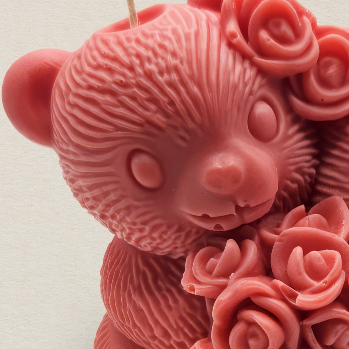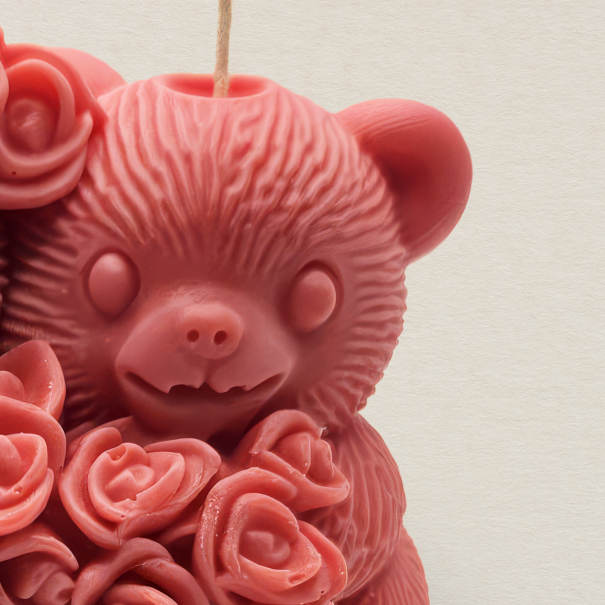 Urocza świeczka sojowa w kształcie misia z bukietem róż to wyjątkowy prezent na Walentynki. Zapakowana w elegancki woreczek celofanowy, ozdobiona walentynkową wstążką i karteczką z dedykacją – gotowa, by podarować ją prosto z serca ❤️