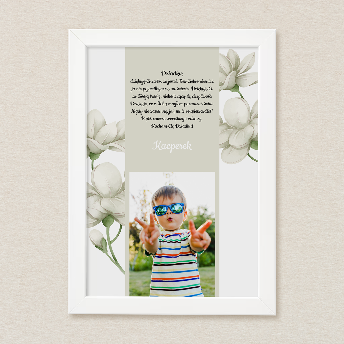 Tablica dla dziadka – Białe kwiaty