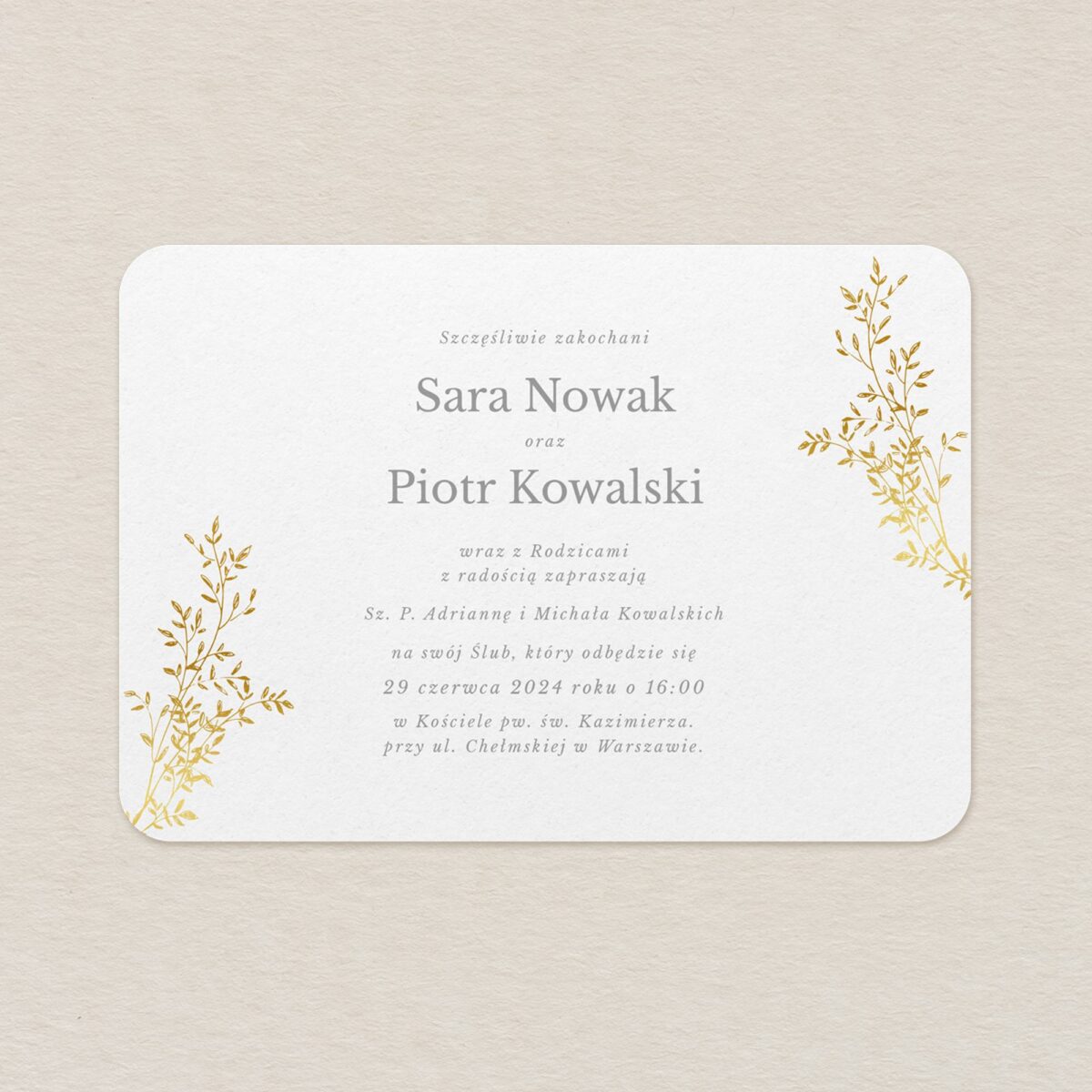 Piękno tkwi w prostocie, w tonacji barw, w przejrzystej formie, delikatnych akcentach oraz w idealnie dobranych detalach, które dodają klimatu i wyznaczają trendy. Spraw, aby Twoje wesele stało się ostoją elegancji, klasy i smaku. Przełam delikatną skromność kontrastem lekko połyskującej fantazji złota w klasycznej beżowo-kremowej tonacji utrzymanej w spójnej harmonii z ozdobną czcionką, która przyciąga spojrzenia. Postaw na minimalistyczne zaproszenia pełne elegancji, szyku, szlachetności i wytwornej perfekcji. Pozwól sobie na więcej oddechu i wolności w przestrzeni, którą wypełnisz słodyczą uczuć i niewymuszoną swobodą.