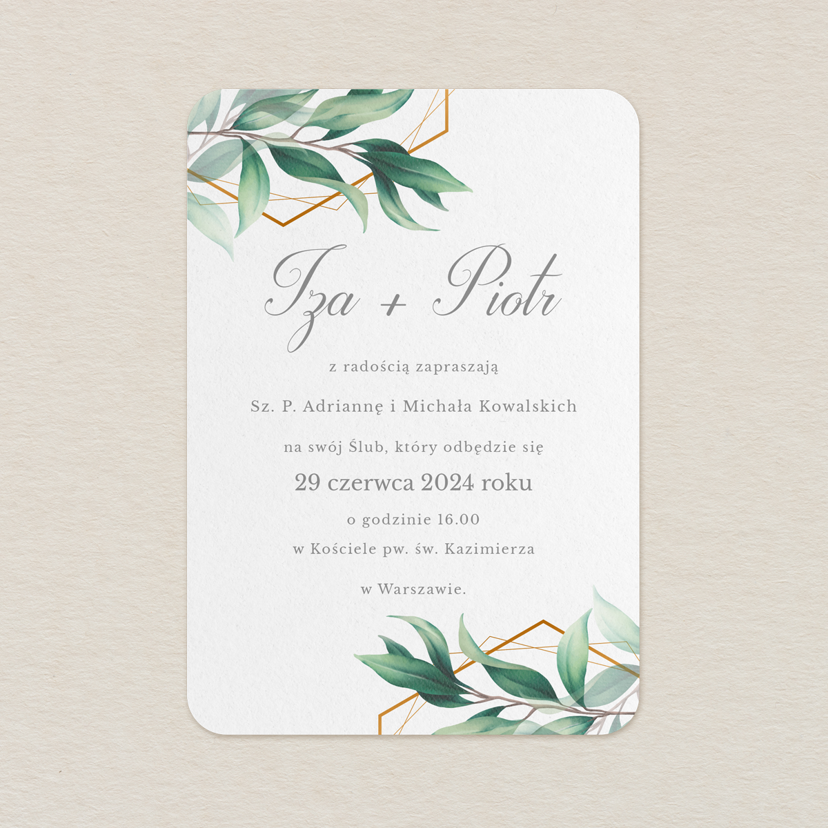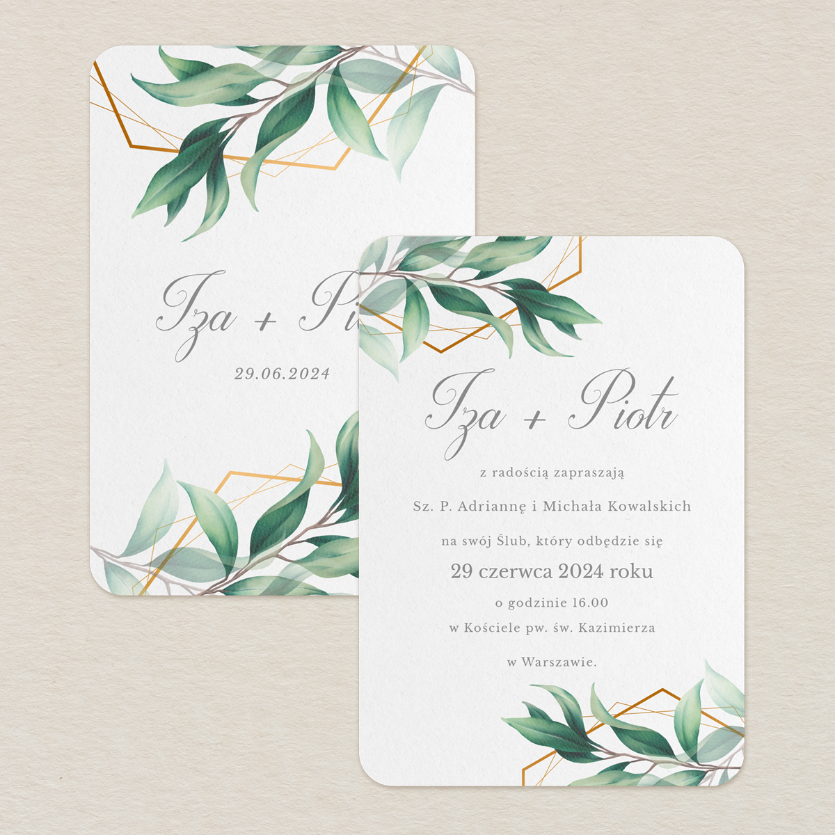 Bogactwo tkwi w prostocie, a ją najprzyjemniej czerpie się z natury, by później na kartce starannie i z uwagą uchwycić jej istotę i nieprzemijające piękno. Co się stanie, kiedy to, co znamy ze świata, połączymy z nieuporządkowaną harmonią kolorowych linii, w różnych tonacjach kolorystycznych? Powstaje wtedy niezwykle czarująca i symboliczna gra motywów, które dodają zaproszeniom potrzebnej dynamiki i niespotykanej energii. Cenisz klasykę i tradycję, ale poszukujesz czegoś więcej? Chciałabyś, aby Twój ślub był wielkim wydarzeniem, a jednocześnie skromną i prostą uroczystością, w której porządek i harmonia grają pierwsze dekoracyjne skrzypce? Wybierz wzór, który urzeka fantazją, nie naruszając granic elegancji, dobrego smaku i umiaru. Daj się ponieść magii natury ze wzorem soczystych liści oraz linii, które symbolizują życie, różnorodność i kontrasty.