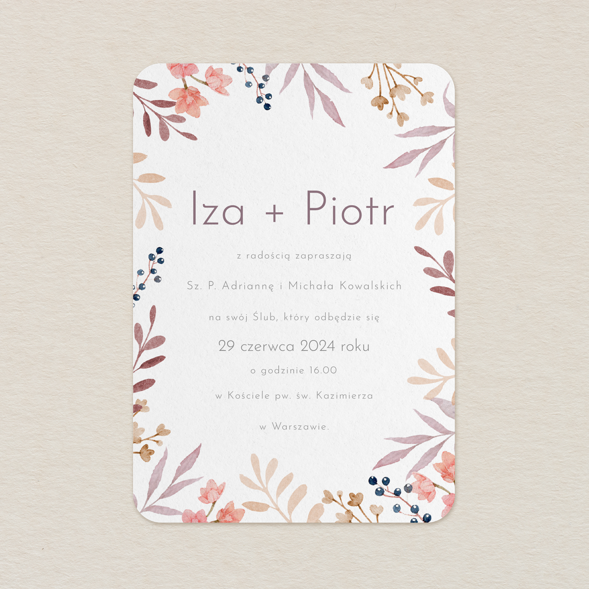 Klasa, kojąca harmonia i nienaganna estetyka, które kuszą dbałością o każdy szczegół i zachwycają przekazem. Z zaproszeniami, w których najpiękniejsze polne kwiaty uzupełniają się z ciepłym kolorem tła i idealnie skrojonymi cieniami wyciętej kartki z kalendarza, na której zapisana jest najważniejsza data to czarująca propozycja idealna dla par, ceniących prostotę, eleganckie zestawienia i umiar w sztuce. Lubicie razem podróżować przez życie, a różnice, które zauważacie są wspaniałym dopełnieniem Waszej relacji? Kochacie naturę, doceniacie piękno otaczającej przyrody i potraficie cieszyć się chwilą? Zaproszenia kwiatowe są dla Was stworzone. Dzięki uniwersalności i pomysłowej symbiozie elementów dopasujecie je do charakteru ceremonii i sprawicie, że uczta będzie wyjątkowym przeżyciem dla Was i wszystkich zaproszonych gości.