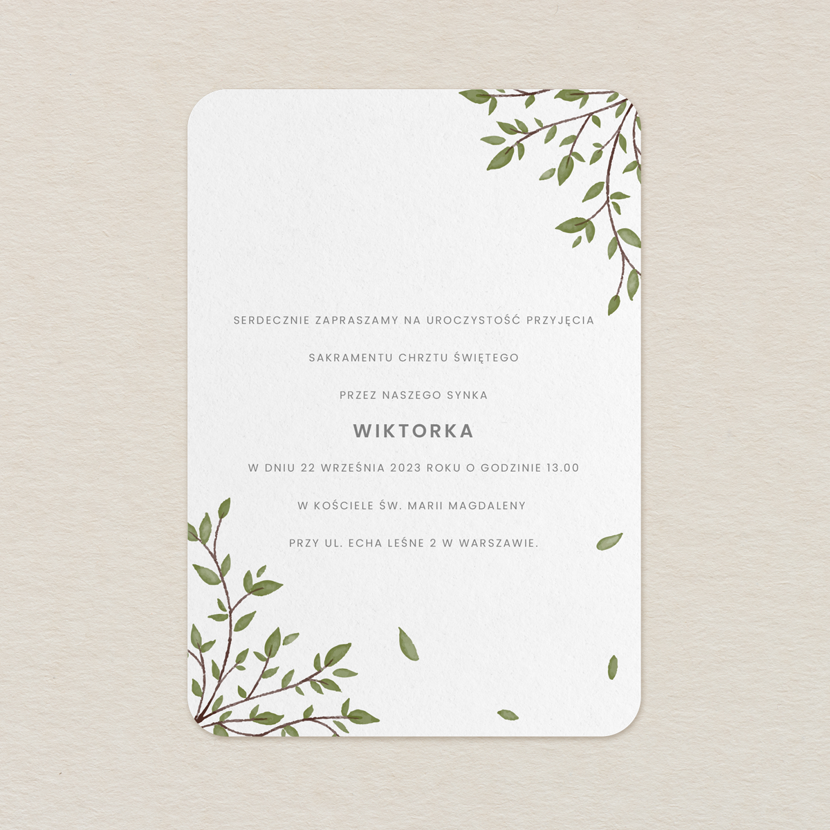 • Rozmiar zaproszenia: B6 – 170 x 119, zaokrąglone rogi