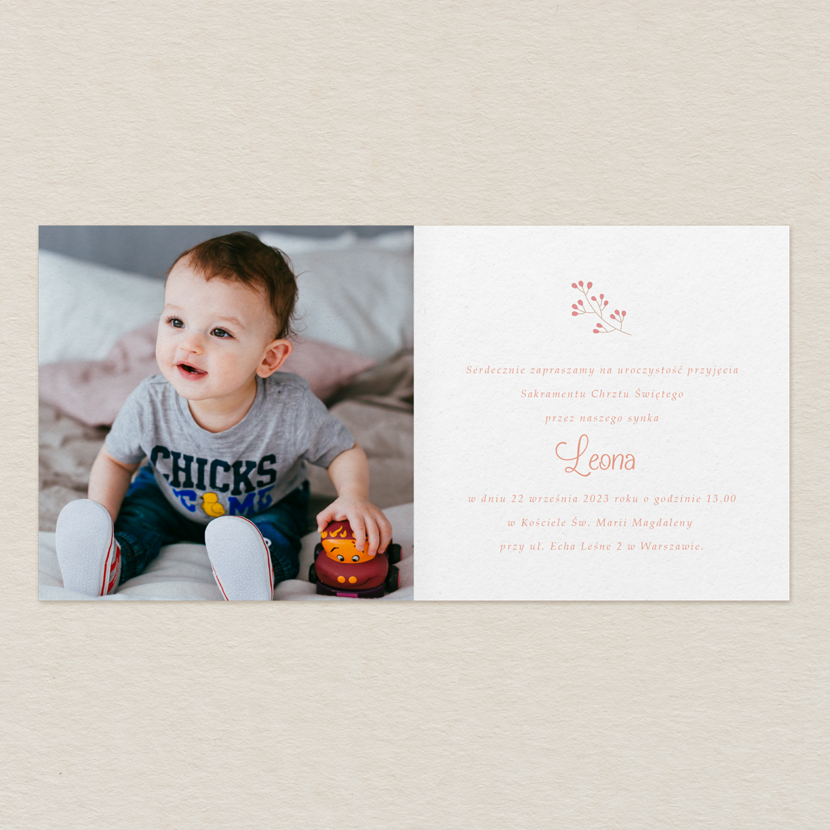 Zaproszenie na Chrzest jednokartkowe ze zdjęciem wzór 5