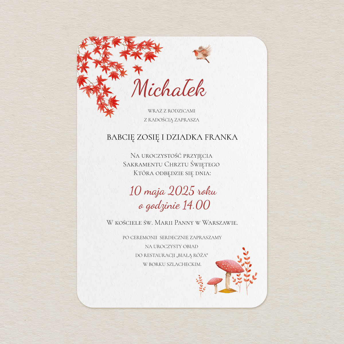 • Rozmiar zaproszenia: B6 – 170 x 119, zaokrąglone rogi