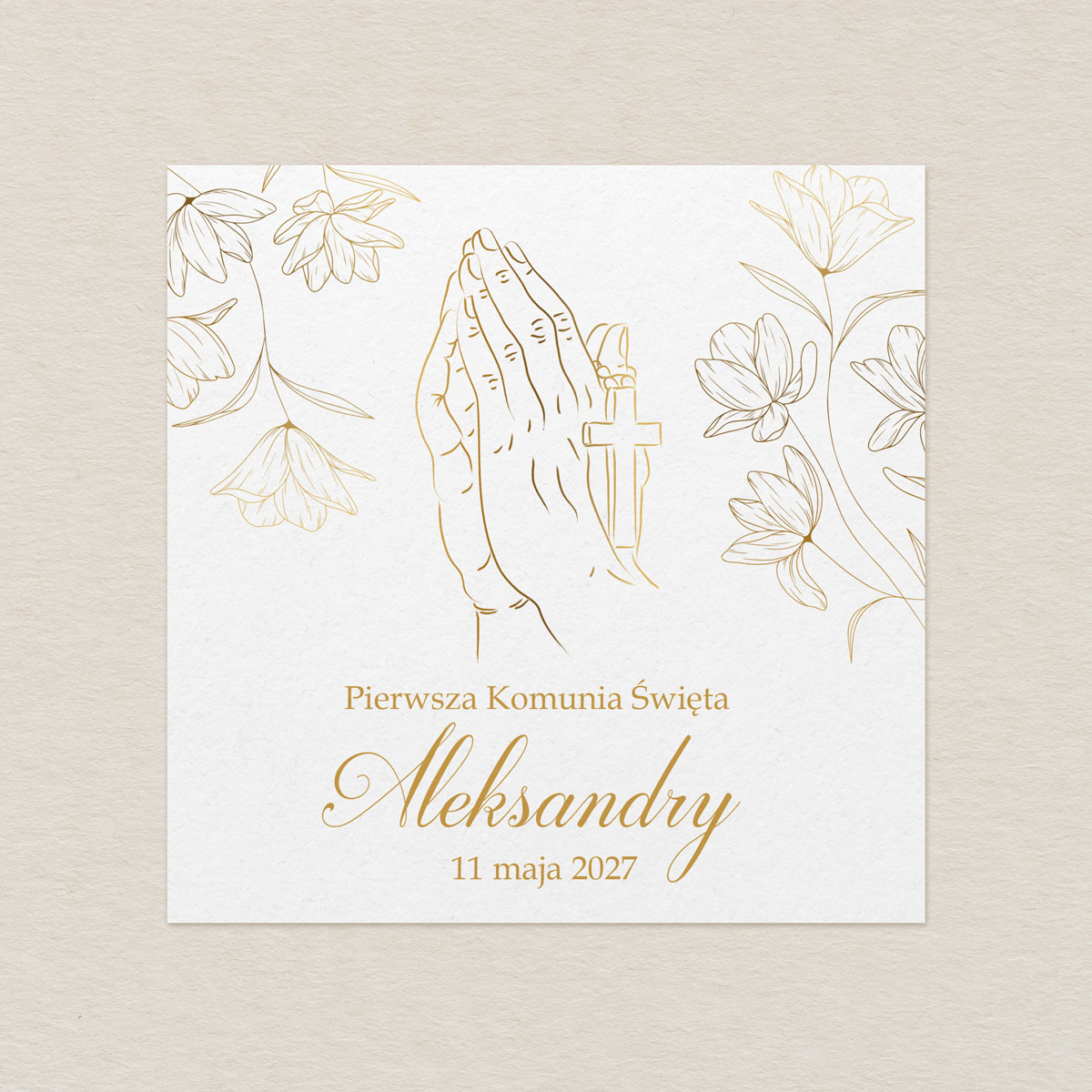 Eleganckie zaproszenie na I Komunię Świętą, zaprojektowane z myślą o wyjątkowym charakterze tej uroczystości. Starannie wykonane, estetyczne i ponadczasowe – idealne jako pierwsza zapowiedź ważnego dnia oraz piękna pamiątka dla zaproszonych gości.