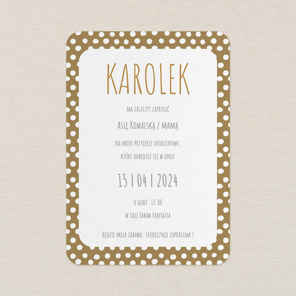 • Rozmiar zaproszenia: B6 – 170 x 119, zaokrąglone rogi