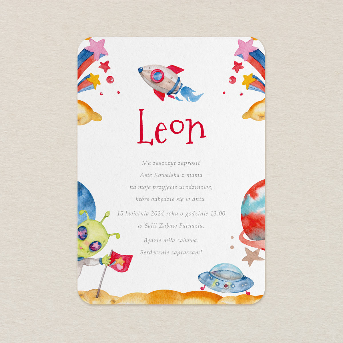 Zaproszenie na Urodziny z motywem Kosmiczne