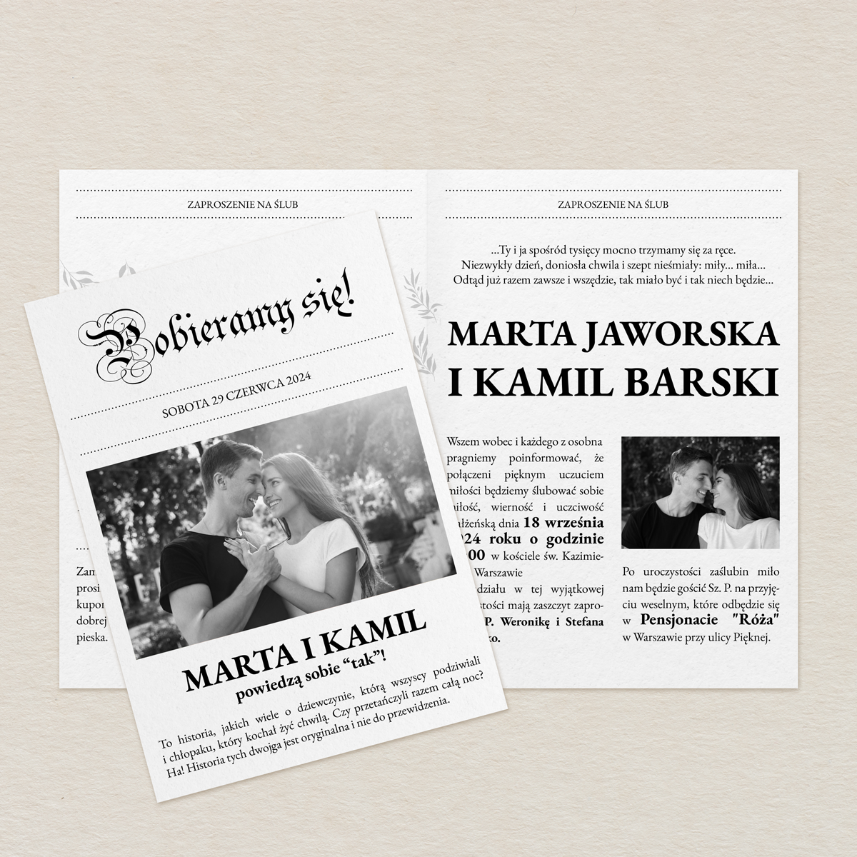 • Rozmiar zaproszenia: A5 – 210 x 148, po złożeniu: 105 x 148