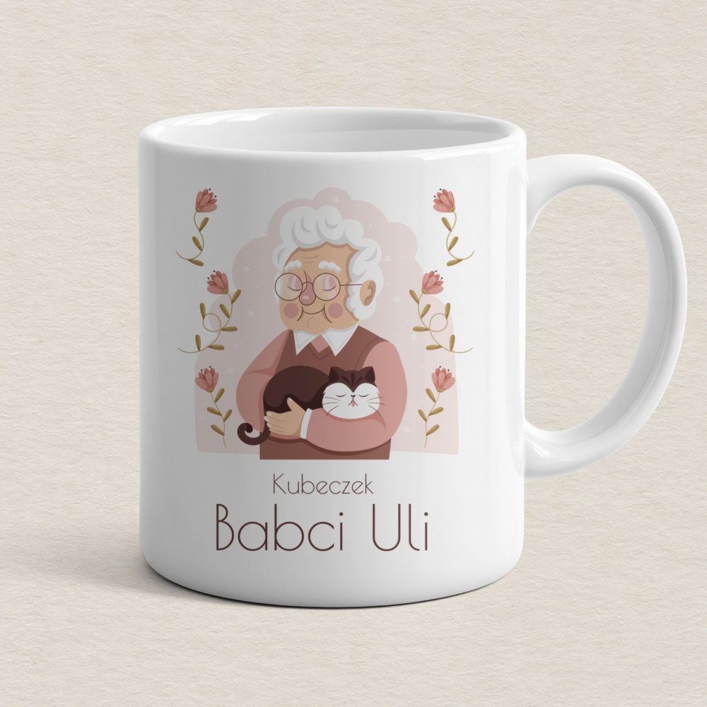 Personalizowany prezent na Dzień Babci – zestaw z kubkiem, krówkami i herbatą. Kubek, krówki oraz naklejka na herbatę są personalizowane imieniem Babci. Gotowy zestaw prezentowy w eleganckim opakowaniu, idealny na Dzień Babci lub jako wyjątkowy upominek.