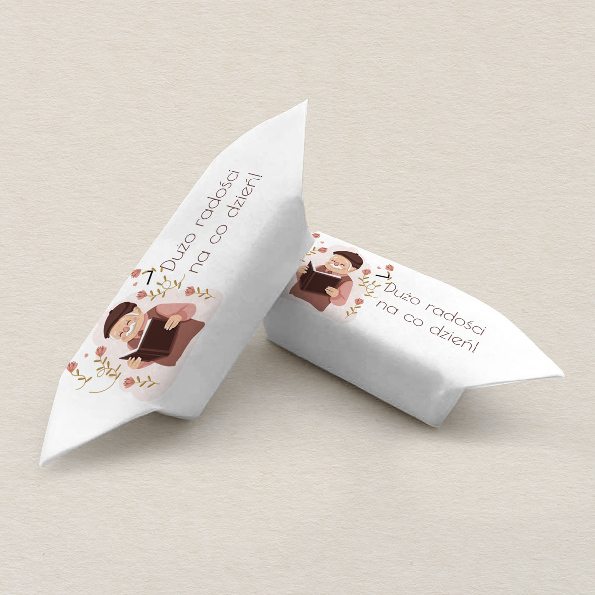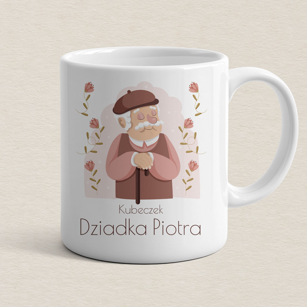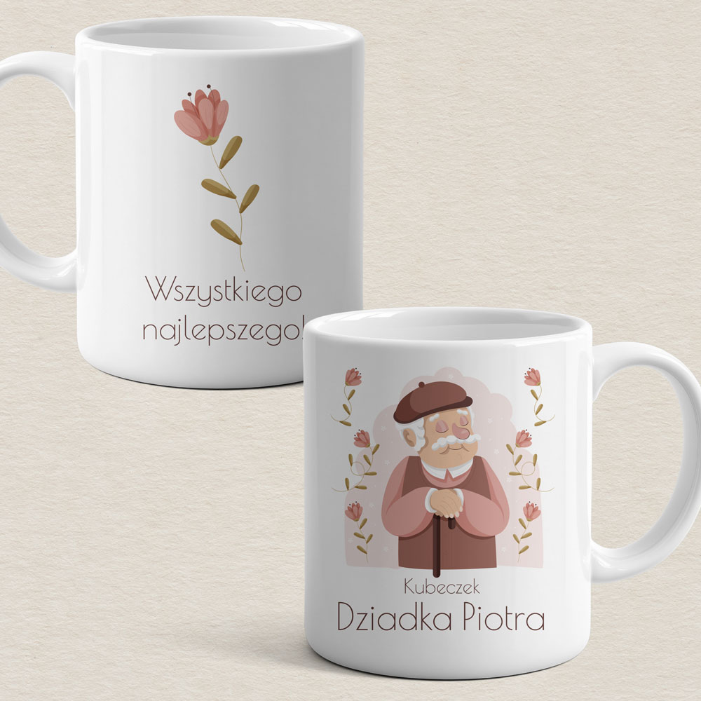 Personalizowany prezent na Dzień Dziadka – zestaw z kubkiem, krówkami i herbatą. Kubek, krówki oraz naklejka na herbatę są personalizowane imieniem Dziadka. Gotowy zestaw prezentowy w eleganckim opakowaniu, idealny na Dzień Dziadka lub jako wyjątkowy upominek.