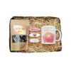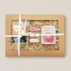 • Pudełko prezentowe z okienkiem – ekologiczne, 3-warstwowe, tekstura Fala E, gramatura 395 g/m², wypełnione dekoracyjnym siankiem.